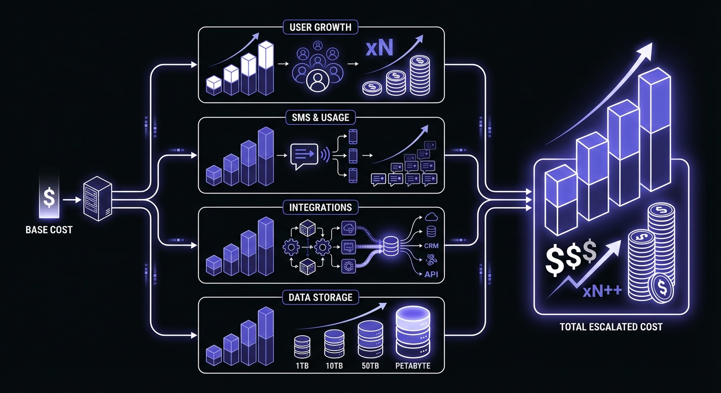 The advertised price is rarely the real price. Per-user fees, SMS charges, integration paywalls, and data retention limits can easily double your expected cost.