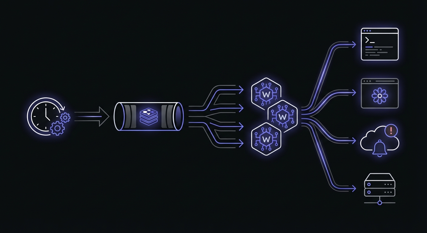 Celery Beat schedules tasks that execute across a distributed worker pool. Ideal for high-volume task processing but adds complexity.