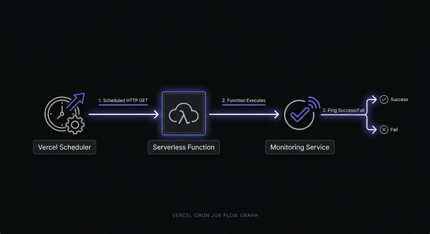 }At the scheduled time, Vercel sends an HTTP request to your API route. The function executes, and that's it. No retry on failure, no notification, no logging beyond what you implement yourself.