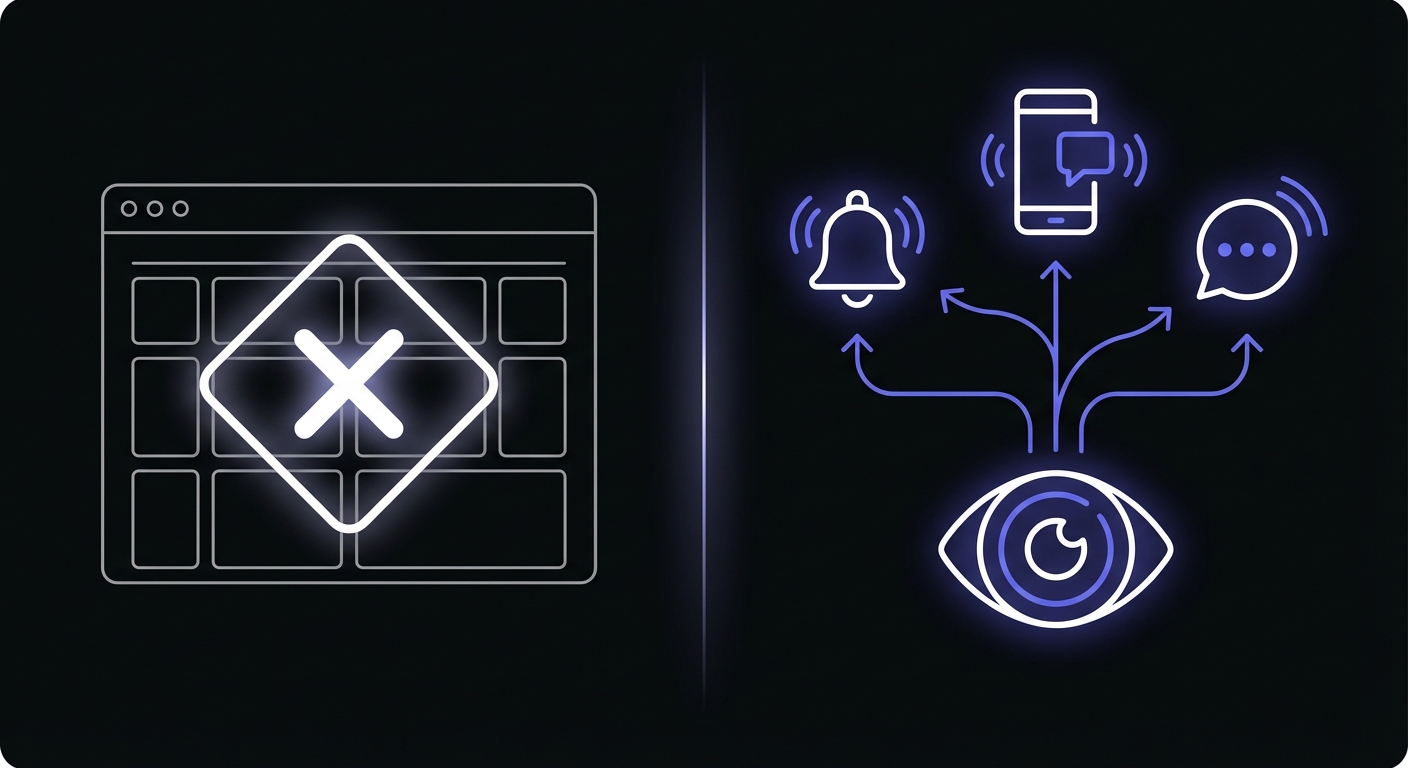 Proactive alerting: You want to know about failures immediately through Slack, email, or SMS, not by checking a dashboard.