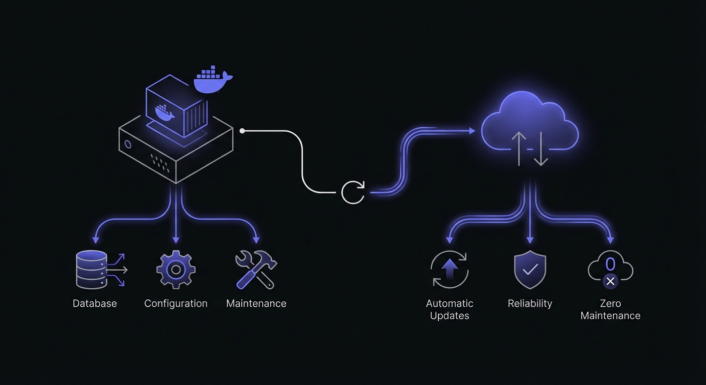 Maintenance overhead: You become responsible for updates, security patches, database backups, and uptime.