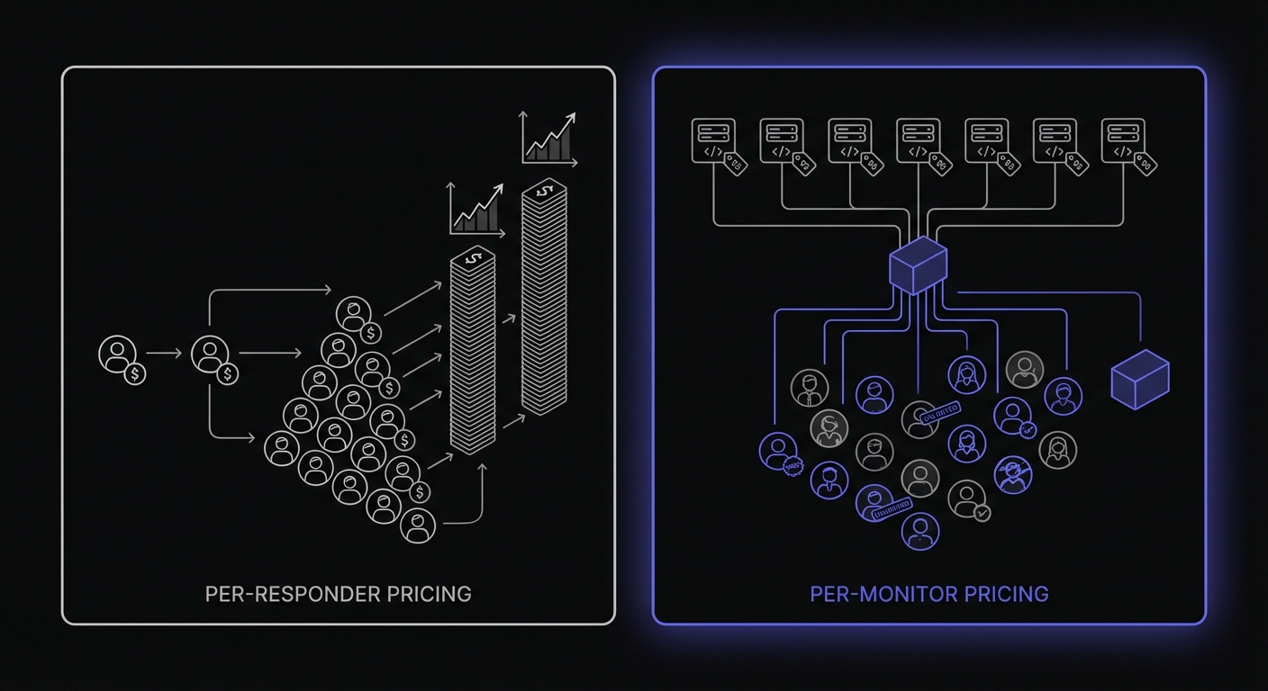 Pricing simplicity: No per-responder fees. No usage-based surprises. Pick a tier and pay that price.
